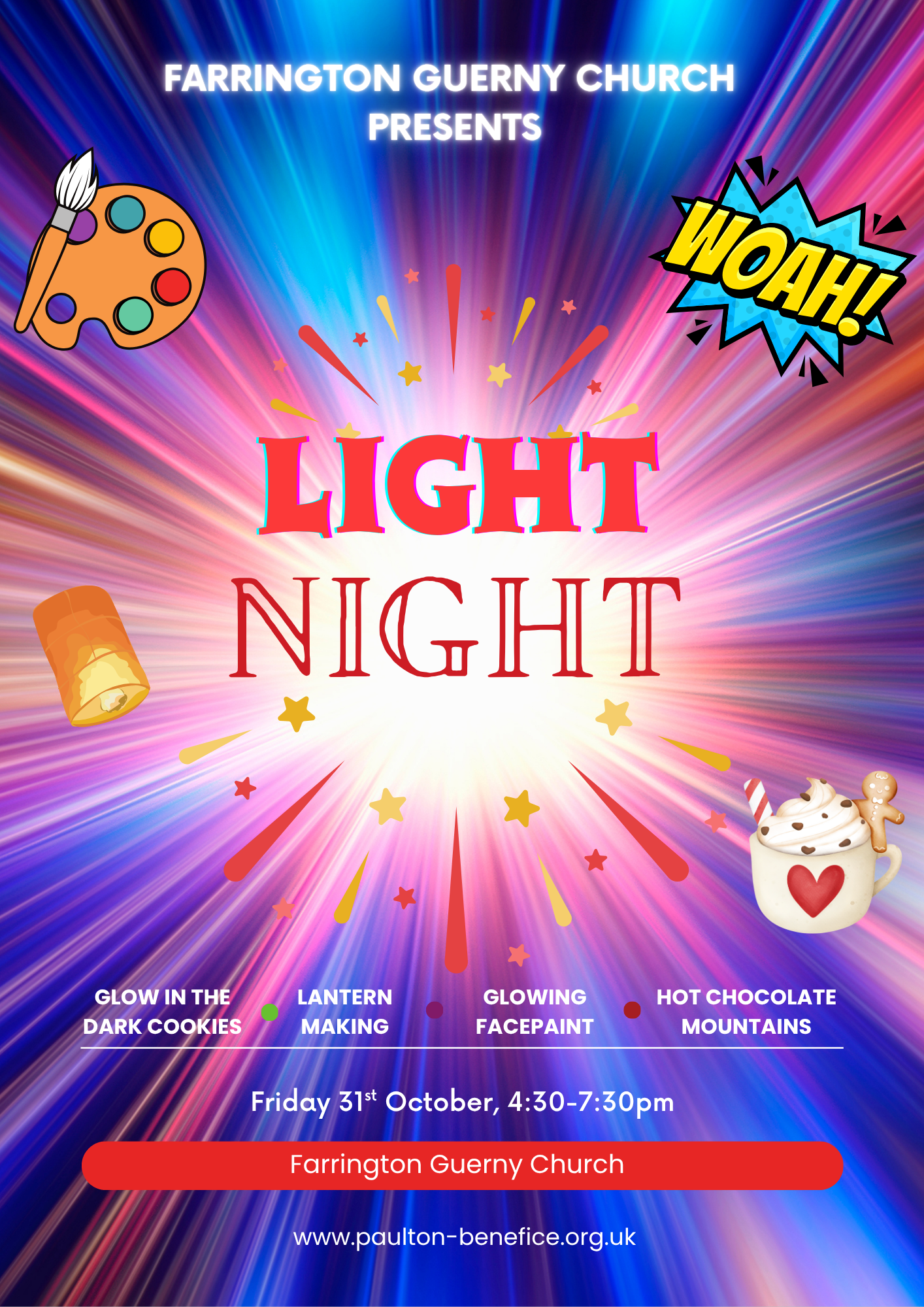 It’s half term this week and me and my family are on a crazy mission from God again so I’ll keep it brief. Lot’s of events this week -It’s Messy Church in Paulton today at 3pm, we have our ‘Light Night’ in Farrington on Friday from 4.30pm to 7.30pm skittles in High Littleton on Saturday at the Diddy club from 7pm.