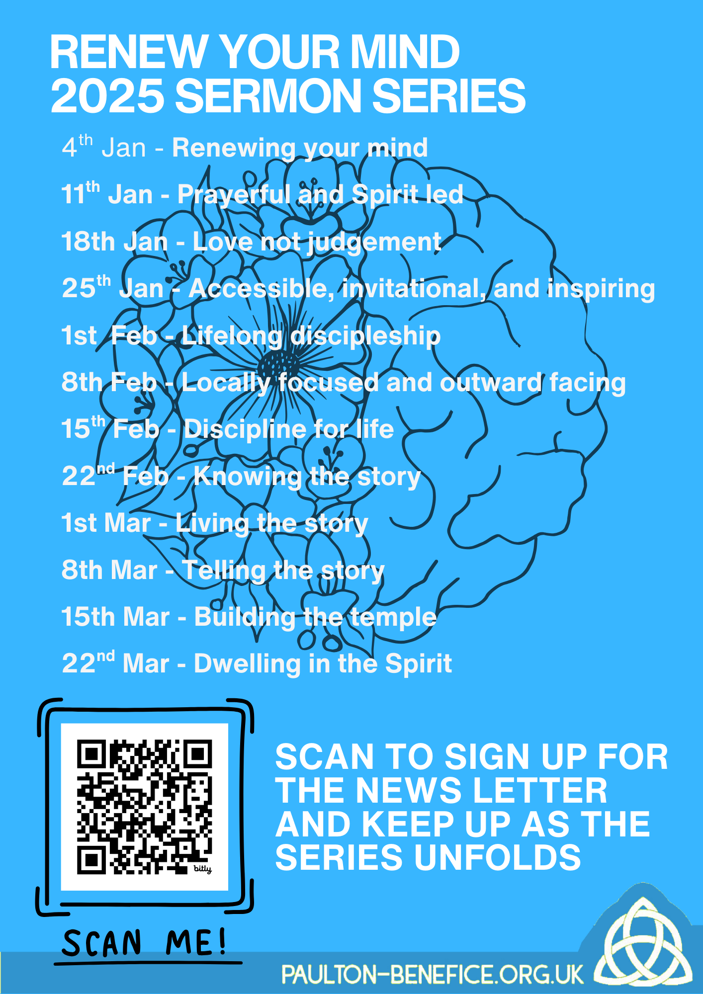 Happy new year to you, if I have not seen you already. Thanks to all those who made it along to the first Sunday of the year. It was great to kick of the ‘renew your mind’ sermon series with so many of you. Please use the ‘sermon audio’ link below to catch up if you missed it.
