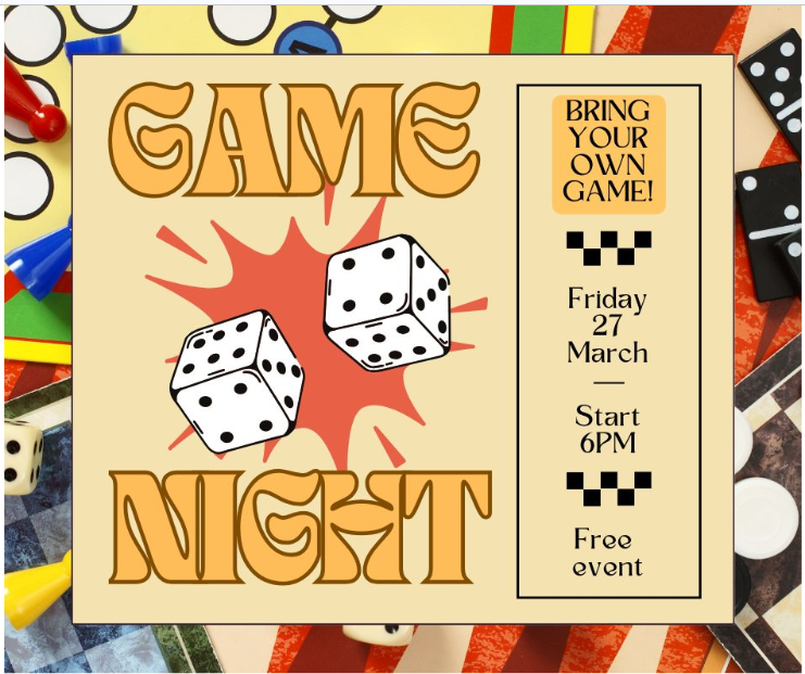Games Night: Friday 27th March, 6:00pm